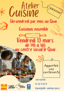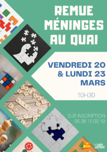 Cet atelier se déroulera le jeudi 12 mars à 14h au Quai.