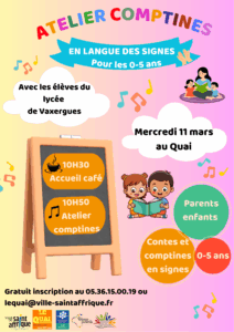 Il s’agit d’une animation accessible à tous. L’animation se fait sur inscription, au 0536150019 ou par mail : lequai@ville-saintaffrique.fr