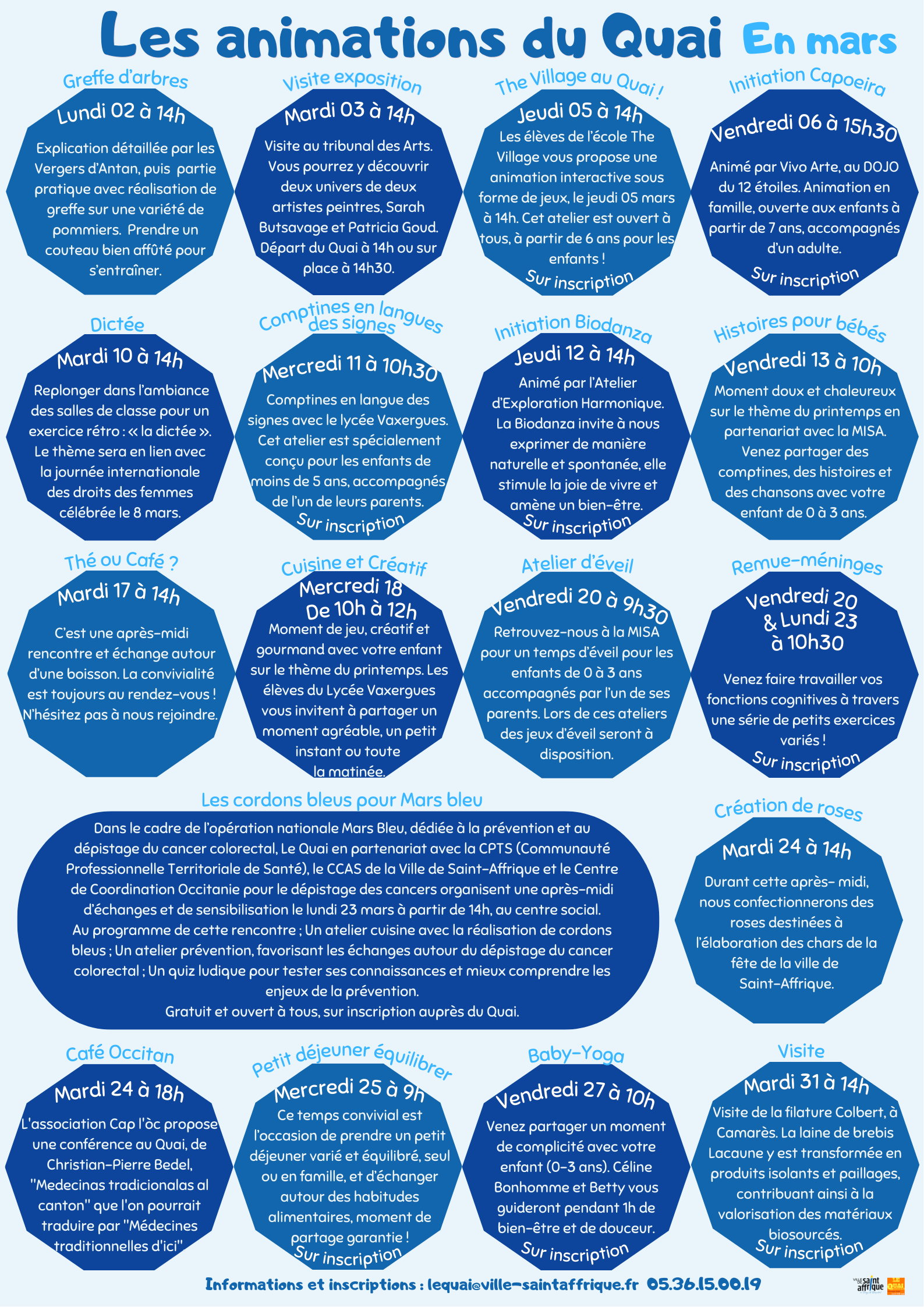 Pensez à vous inscrire auprès du Quai, au 0536150019 ou par mail : lequai@ville-saintaffrique.fr
