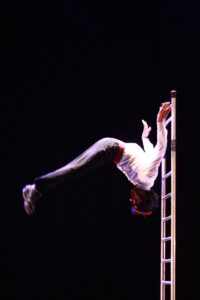 PolySons propose un cocktail explosif de numéros où l’esprit du cirque s’invite à la danse, où les corps défient la gravité et où l’absurde flirte avec la poésie.